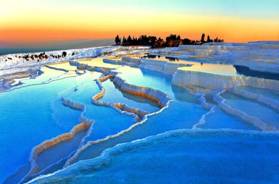 Darnos un baño en las piscinas naturales de Mármol Travertino en Pamukkale, declarado Patrimonio de la Humanidad desde 1988.